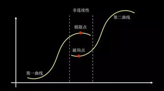 企业必须在第一条曲线即现有产品业务还处在上升阶段(破局点),就启动打造第二曲线即新的产品业务。