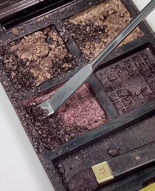 而彩妆修复中另一种常见项目则是对产品包装进行重新改装。比如,将几种颜色较为心仪的眼影从原装挖出一部分,再填装进新的包装重新进行组合。或是将一个空的彩妆盘自行填补上不同的产品。更有甚者,会积攒多个口红或粉底小样再制成正装的样子。