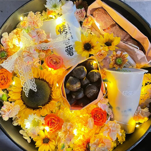 第一波走红的“四件套”,大多是由鲜花店主导,茶饮店提供奶茶,再由鲜花店购买烤红薯等相关产品,最后鲜花店包装设计再配送。