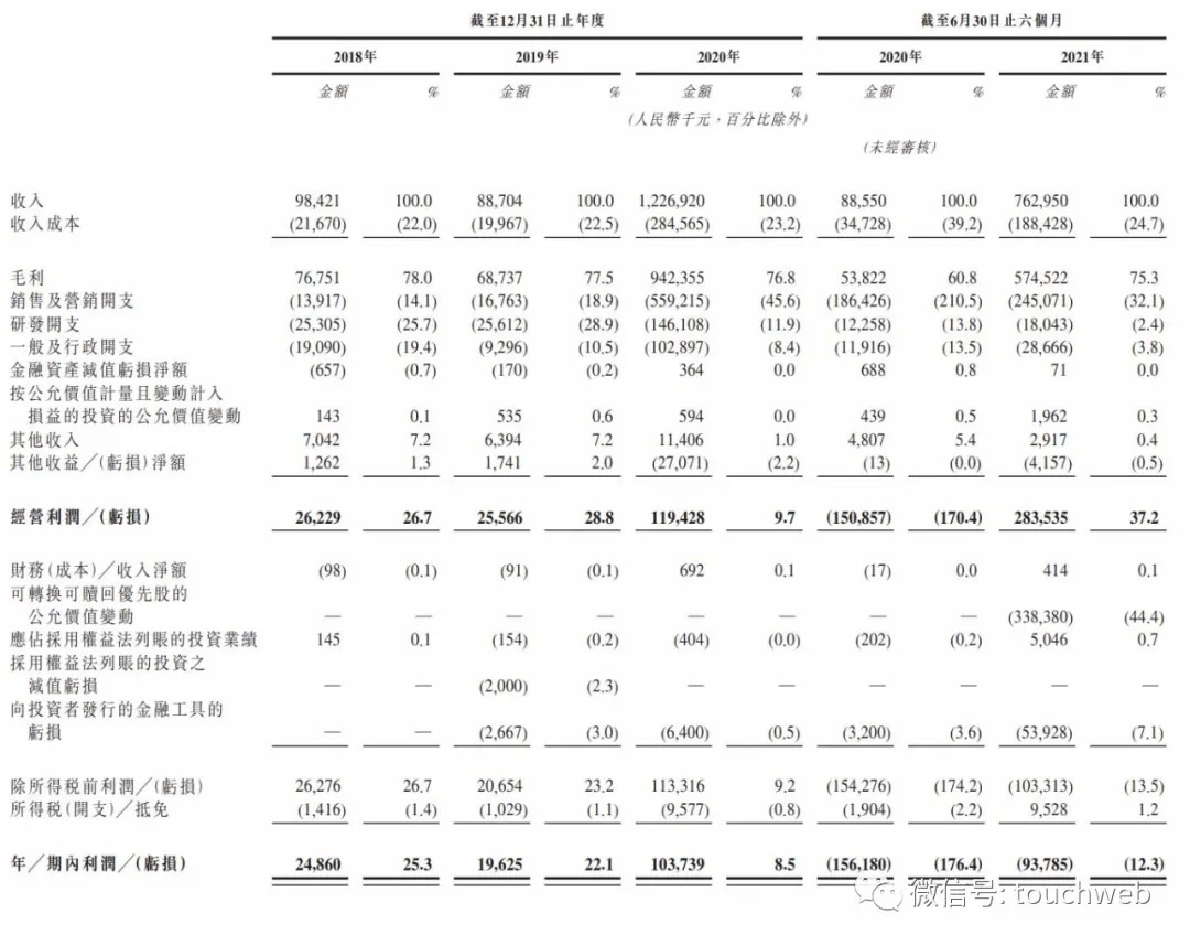 招股书显示,青瓷游戏2018年、2019年、2020年营收分别为9842万元、8870万元、12.27亿元;毛利分别为7675万元、6874万元、9.42亿元;毛利率分别为78%、77.5%、76.8%;