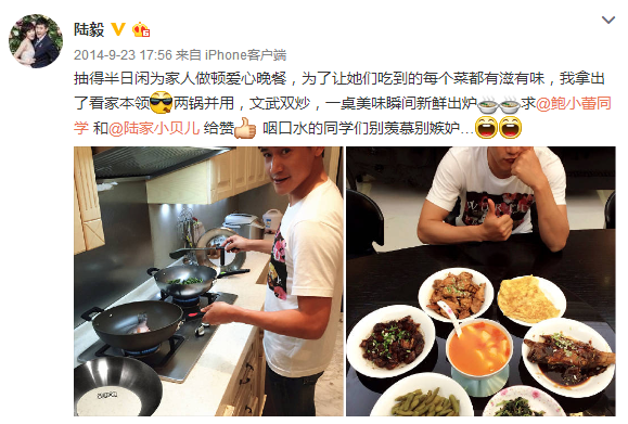 接受采访的时候,陆毅是这样说的:“说实话,我不希望鲍蕾的厨艺好,我甚至希望她做得越难吃越好。我希望做更多的好吃的让她吃,而不是让她在厨房里跟锅碗瓢盘较劲。这是我爱她的一种方式”,是…我..爱…她...的…一…种…方...式,这恩爱秀的我要给陆毅一万个赞呐!还在学宋仲基撩妹的男生,你们听到了木有,要想抓住女神的心,请先抓住女神的胃哟!(害羞脸)