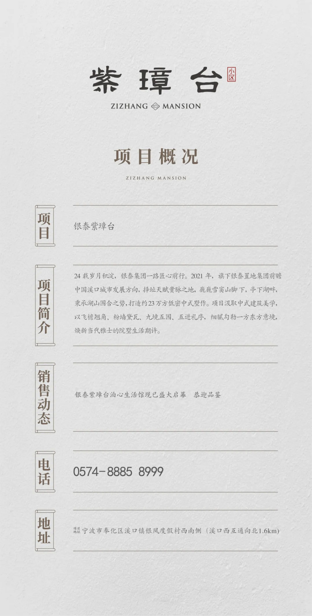 1、本项目推广名为“紫璋台”,备案名为“紫璋台小区”;开发公司为:宁波溪口银泰旅游开发有限公司;2、本资料为要约邀请,不作为要约或承诺;买卖双方的权利义务以双方签订的《商品房买卖合同》及其补充协议、附件等书面文件为准;3、相关宣传内容不排除因政府相关规划、规定及出卖人分期规划、方案优化调整、未能控制等原因发生变化;4、罗宾逊家族R44直升机系罗宾逊直升机公司生产。5、本资料发布时间为2021年11月,出卖人将不定期对宣传材料进行修改,本资料有效期为2个月,敬请留意最新资料。