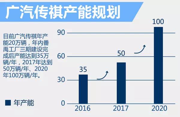根据广汽传祺规划,到2017年传祺将实现50万的产能,到2020年实现100万辆的产能。除了在建的广州番禹工厂三期和规划中的杭州工厂外,坐落中国西北部的乌鲁木齐工厂不仅进一步扩充广汽传祺产能,同时也为传祺打开北部地区市场。这也为传祺的百万年销量目标提供坚实后盾。