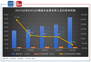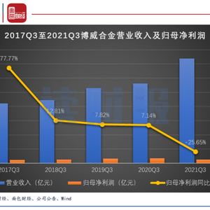 图4:2017Q3至2021Q3博威合金营业收入及归母净利润