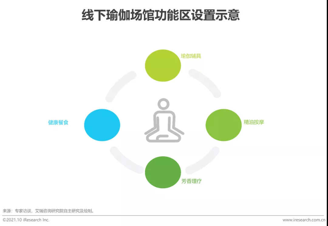 如前文所述,瑜伽核心用户以高收入、高消费的城市女性为主。随着新时代女性回归自我,追求个性表达、自律意识逐渐增强,瑜伽行业除了提供瑜伽课程服务以外,也逐渐延伸出许多围绕女性会员的多元化服务,以此来满足高端女性消费人群的多方面需求。例如,线下瑜伽馆在场馆中除了设置常规瑜伽教室外,还强化了功能区的设计,为会员提供瑜伽辅具、精油按摩、芳香理疗以及健康餐食等周边服务;同时,瑜伽馆还借助新一代信息技术手段搭建线上平台,一方面便于会员的课程预约与管理,另一方面围绕高端消费人群的用户特点,提供内容互动、社交分享以及电商购物等一体化平台服务,维持消费者粘性,打造品牌效应。