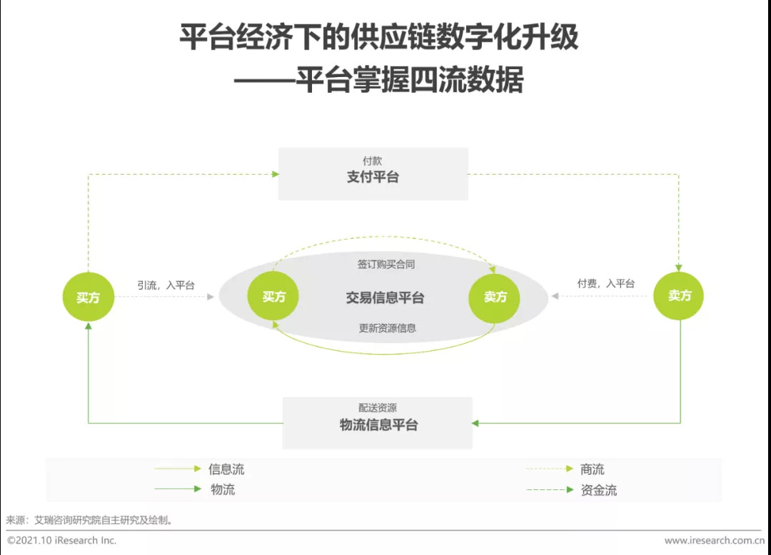 过往企业与企业,企业与消费者之间的交易、支付、物流都在线下进行。在平台经济背景下,企业与企业、企业与消费者之间的交易及相关配套服务都基于平台展开,信息流、商流、物流、资金流四流信息通过平台实现数字化。在小微融资领域里,平台将小微企业四流数据加密传递给金融机构,金融机构以数字化的四流为基础,设计信贷产品。