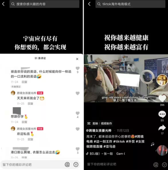 同样是外语专业人才,一个从导游到TikTok带货主播,一个从翻译到TikTok带货主播,夏天和晏光桦进入出海这个行业还有着相似的“契机”——疫情是促使她们转变职业的一个因素。