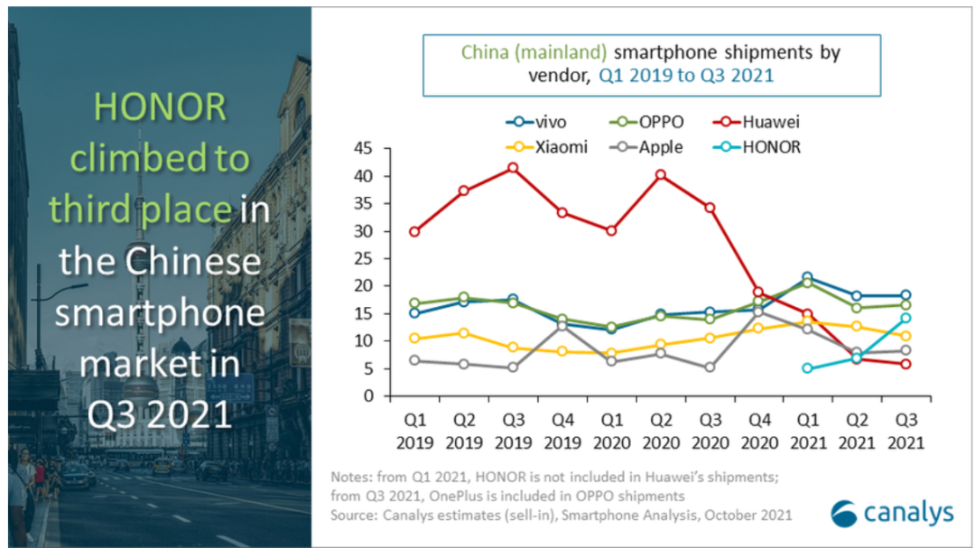 业绩增速下行,三季度智能手机国内份额跌出前三