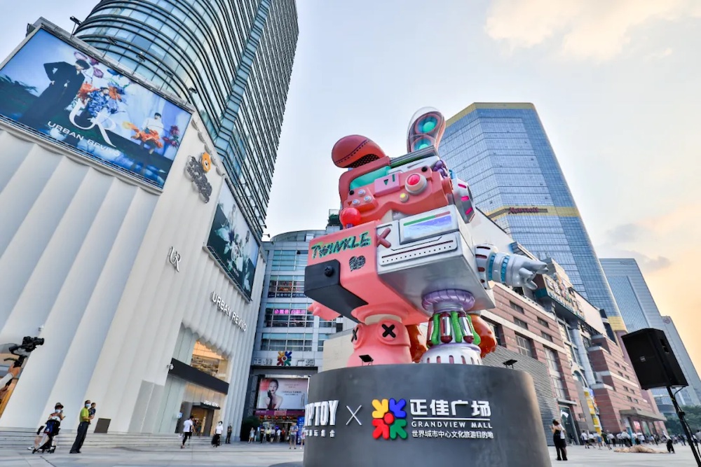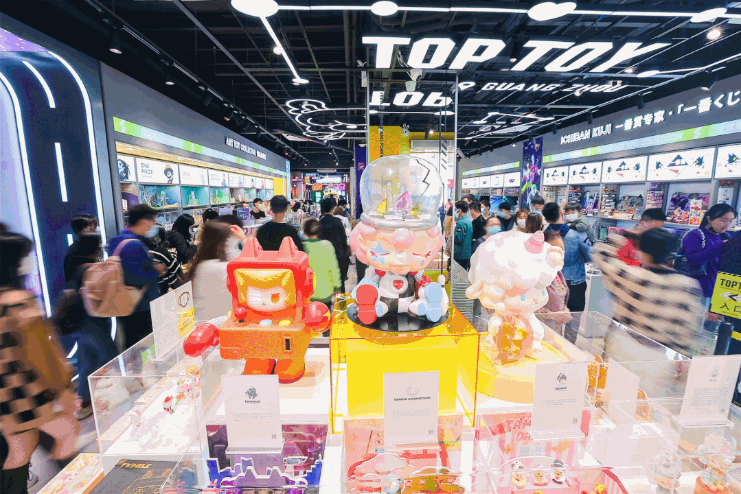 在刚刚过去的11月,TOP TOY在广州北京路开了第9家梦工厂店,仿哥特式骑楼的设计既保留了北京路商圈整体的复古风格,也多了些潮流元素。作为所有门店中面积最大的梦工厂店,采用“店展结合”的模式将展览和销售融为一体,一度成为年轻人们打卡的新空间。