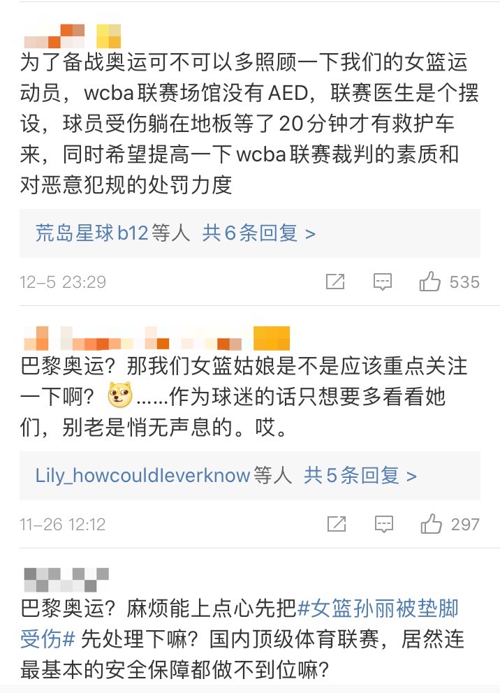 王馨雨同样提到联赛后勤保障问题:“从孙丽受伤到救护车到现场,接近30分钟。女篮联赛的后勤保障水平暴露无遗。”