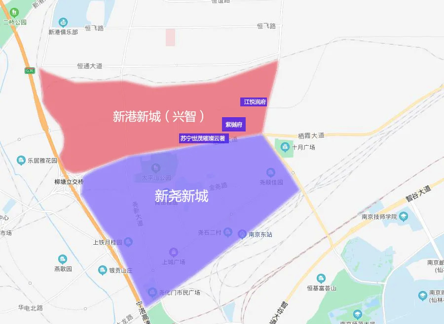 项目所在的新港新城(兴智)板块,与新尧新城紧密相连,从地理区位来看,两板块仅一条栖霞大道相隔,但是区域的定位截然不同。新港新城板块虽然发展相较新尧新城较晚,但其功能定位为南京经济技术开发区、出品加工区的生活配套区。近些年区域在产业、交通、教育等资源逐步向前推进已经是一个事实。