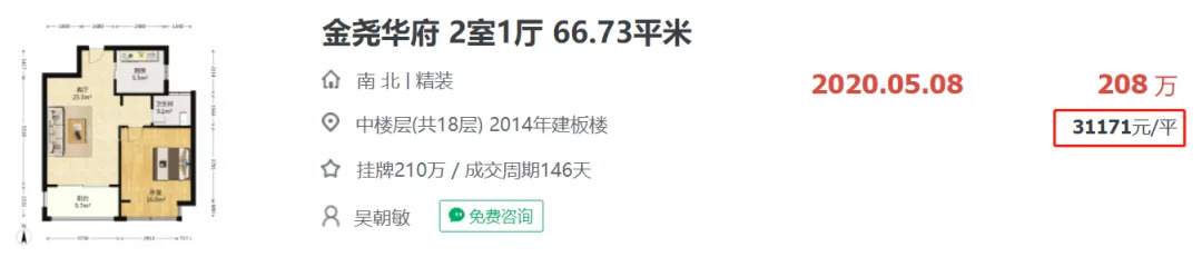 至于二手房方面,兴智科创新城区域内有金尧华府、银河湾卓苑、东城世家二手房房小区。据链家网显示,目前板块内二手房均价主要在2.1-3.1万/㎡左右。其中,2020年5月份,金尧华府一套66.73㎡的二手房源,以总价208万成交,成交单价达31171元/㎡。