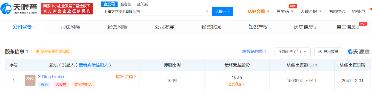 天眼查APP显示,12月7日,上海玄戒技术有限公司成立,注册资本15亿人民币,曾学忠担任其执行董事、总经理、法定代表人;刘德任监事,该公司经营范围包括电子科技、通信科技、信息科技、半导体科技领域内的技术服务、技术开发。技术咨询等;集成电路芯片设计及服务;集成电路芯片及产品销售;半导体分立器件销售,由X-Ring Limited全资控股。