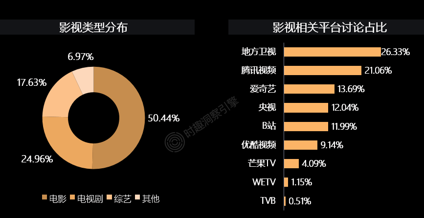 在所有文化娱乐类别中,Z世代爱电影超过电视剧、综艺,相关热议占比一半以上。除地方卫视外,Z世代也很喜欢腾讯视频、爱奇艺等互联网视频平台,不断孵化年轻内容的B站逐渐成为Z世代的心头好。