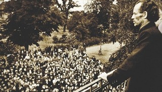 同一个月即1949年3月,在同一片地区,有报道称信仰治疗师布鲁诺·格罗宁(Bruno Gröning)为黑尔福德这座小城带来了一场富有轰动效应的治疗,他治好了一个名叫迪特尔·许斯曼的跛脚男孩,使他能正常行走了,而此前许多采用传统疗法的医生都无功而返,这个故事很快就一传十、十传百。格罗宁一下子就收到了各大报刊、电台与新闻的访谈邀请。他长得清瘦而结实,有着一张饱经风霜的脸和一双——与希特勒相似的——锐利的蓝眼睛,他穿着朴素的深色衣服,谈吐以简洁但往往含糊不清的格言为主。他并没有借助精心设计的仪式或典礼来治愈病人,大部分情况下他只是靠近他们,有时一连几个小时,将目光集中在他们身上,然后告诉病人他们已经痊愈了。他没有著书立说,没有成立教会,也没有凭借他所谓的天赋来发财的企图。 格罗宁生于1906年,是一名罗马天主教徒,在但泽郊区长大,曾在战争中服役,1945年3月被俘虏,几个月后又以难民身份前往西德。他在1928年结婚,育有两个孩子,但都早夭。在但泽期间,他曾做过木匠、电工和钟表师。