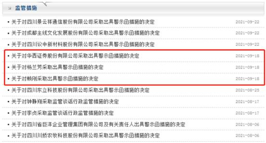对于上述案情,2021年8月四川证监局曾以存在谋取不正当利益的情形,给投资者造成损失为由,对赖刚下发过警示函。