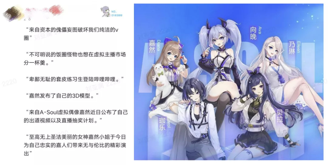 一方面是“入圈”难。虚拟女团A-SOUL初次入驻B站时,就曾遭到部分V圈(二次元属性的VTuber粉丝圈)用户以弹幕刷屏的方式来抵制成员直播。而担心的主要原因就是乐华娱乐会将内娱的饭圈玩法带入到V圈,破坏风气和文化生态。