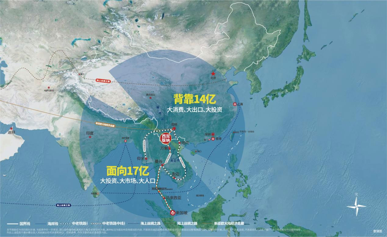 西双版纳背靠国内14亿大消费出口和投资市场,融合了全国文旅、康养、度假、出境游等消费力;长三角、珠三角产业转移、技术合作的产业力;以及国内金融市场活跃的投资力。除此之外,西双版纳还面向南亚、东南亚等17亿国外市场。包括活力型人口结构,日益增长消费需求,基建开发、产业发展等增长空间,以及矿、油、气等战略区位及优势资源。
