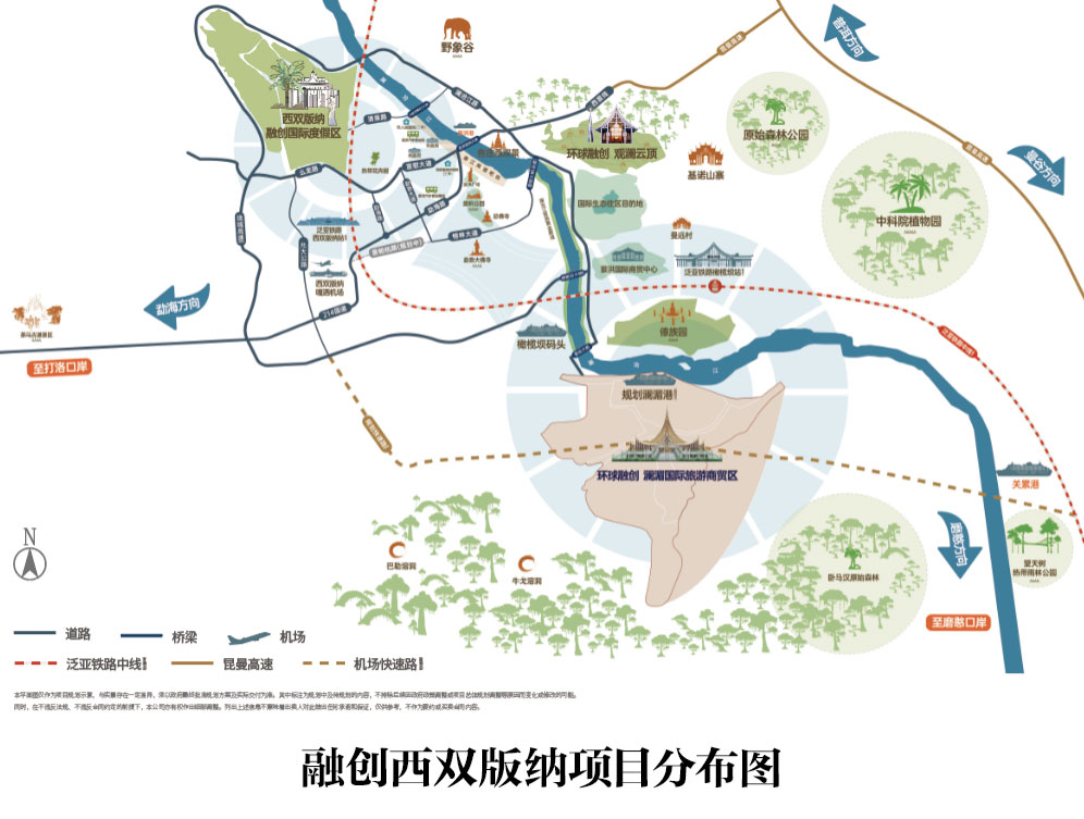 项目首期澜湄文化城占地1852亩,规划主题“水上雨林、极致岛居”,包含会客厅、民宿客栈群落、傣梦水街、星级酒店群等业态,并以中、老、缅、泰、柬、越六国文化为依托,打造项目人气中心,成为国外游客了解中国民族文化、国内游客体验纯正东南亚生活的第一站。