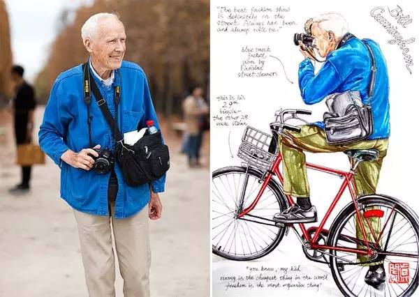 每一季去巴黎看秀,Bill Cunngham都自掏腰包。别人住五星级酒店。他住郊外的小旅馆,搭地铁,骑自行车去秀场。而且,永远穿着只值20块钱的蓝色环卫工制服。