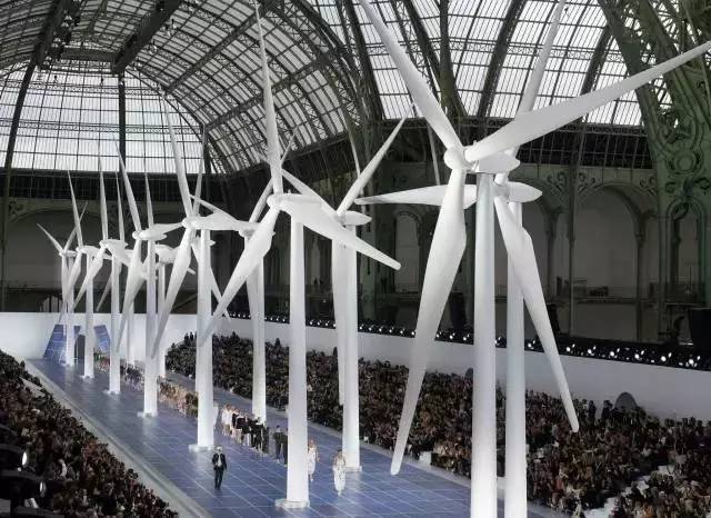 2013年巴黎时装周Chanel春夏“风力发电秀”。连地板都换成了太阳能电池板。