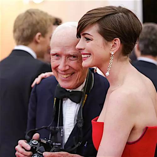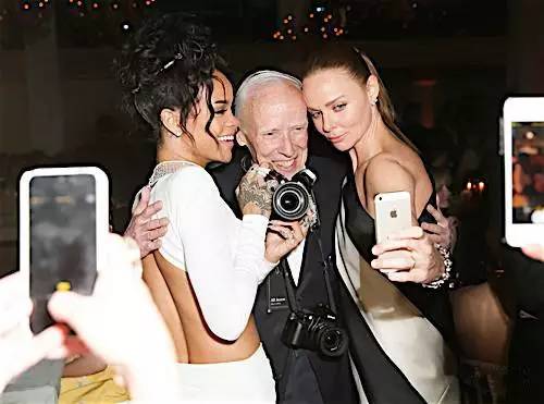 更多的人连被拍的资格都没有,只能拼命合张影。例如安妮·海瑟薇和蕾哈娜,见到这个驼背老头,自觉贴上来正名自己懂时尚。