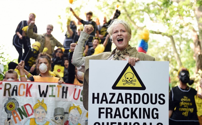 为了反对政府使用“水力压裂法”开采页岩气。74岁的她直接把装甲车开到首相家门口,和一众示威者手举标语,高呼抗议。不过这对一辈子离经叛道的她真算不上什么大事儿。