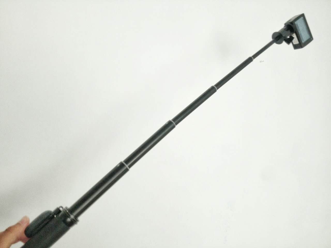 自拍杆顶部采用了360度水平旋转和90度垂直旋转的1/4螺纹标准云台的设计,可以支持固定市面上发售的所有相机,侧面的拨杆则可以对云台进行锁定和解锁。采用铝合金和弹簧钢为材质的自拍杆,在持握部分还采用了硅胶材质,使用起来手感舒适。