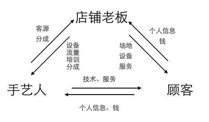 要对其进行解释,首先要回到两年前。那时的美业星球只生活着三个物种:手艺人、店老板、顾客。他们共同组成了如下的生态系统:
