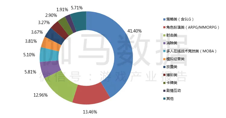 中国自主研发移动游戏海外市场收入前100类型收入占比