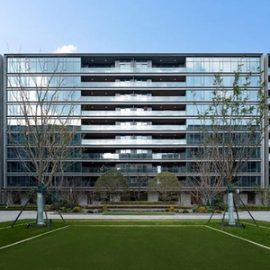 路人无论从哪个角度仰视建筑,映入眼帘的每一帧都是干净、利落的视觉大片。