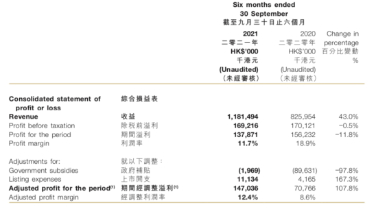 其招股书显示,过去一年里,谭仔国际一共卖出了3073万碗云南米线,平均每间门店每天可以卖出640碗。根据第三方数据,按2020年的收入计算,谭仔国际在香港亚洲面食特色餐厅中排名第一,占据了整个香港亚洲面食约64%的市场份额,是妥妥的市场龙头。