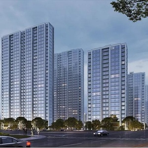 项目的外立面采用大面积整幅玻璃幕墙设计,边框设计几乎趋为0,做到了区域内最大窗墙比0.7(南向),还将打造270°环幕瞰景阳台,基本除了底部的少量建筑框架,整体看上去全是玻璃幕墙。会所内包含休闲水吧、健身房、邻里会客厅等。