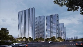 从效果图来看,项目后期带有一定体量的社区商业;外立面现代感十足,大面积玻璃幕墙,墙窗比高。