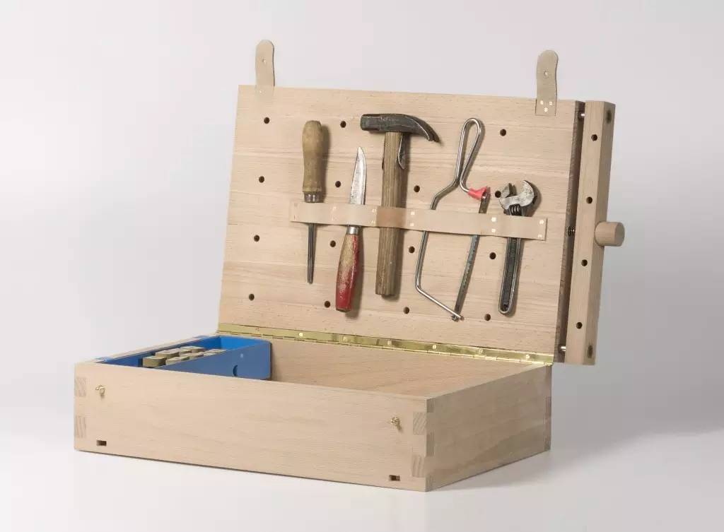 "Workbox"由"Workbench"以及"Toolbox"组成, 这个可随时变形的时髦家伙不大的身躯之内藏着对家用工具的一切需求, 从手锯, 电工器材等一应俱全, 而细节处实用的真皮设计令工具箱更具设计感与质感。
