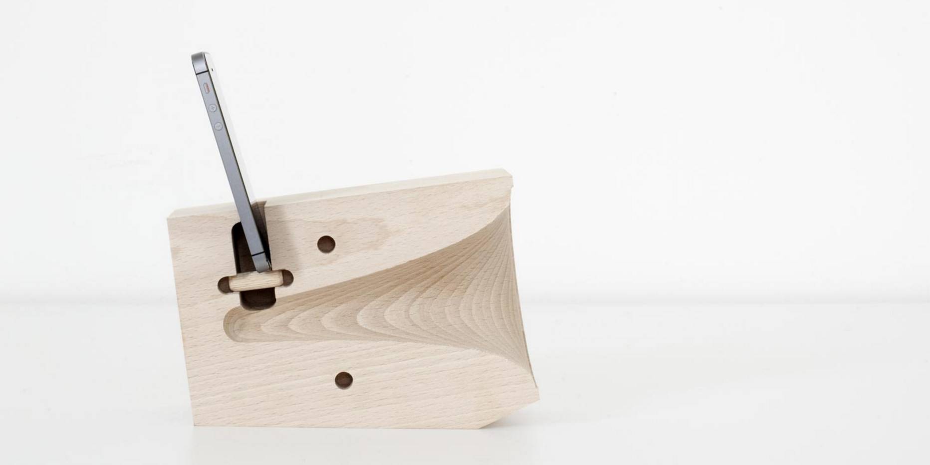 而且, 尽管全身由原木做成, 现代科技产品, 如iPhone等都可以轻松插入凹槽, 成为轻便实用的小型扩音器。用它播放一段从前的音乐, 也许会唤回父亲那时候的记忆呢。