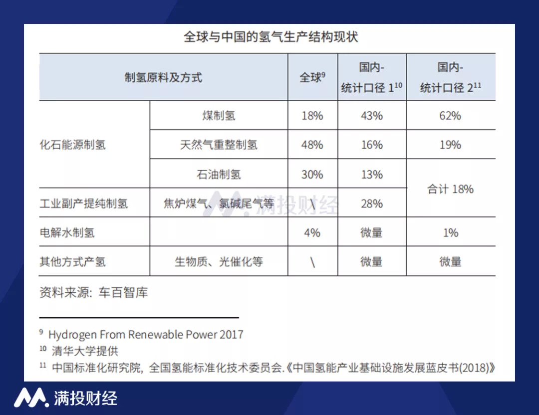 当前我国氢气生产结构以“煤制氢”为主,占比达到62%;其次是天然气制氢,占比为18%;工业副产氢占比18%;电解水制氢也就是“绿氢”占比仅1%。