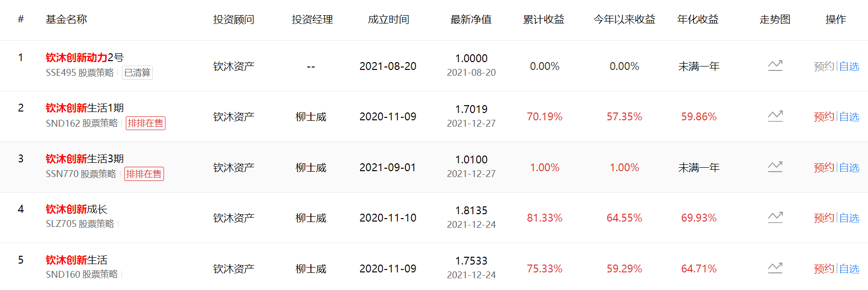 私募排排网数据显示,于洋管理的钦沐创新动力等多只私募产品的投资经理已经变更为柳士威。去年11月成立的钦沐创新成长、钦沐创新生活两只产品成立以来回报率为81.33%、75.33%。而今年8月20日成立的钦沐创新动力2号已经清算。