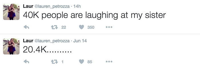 当然,嘲笑姐姐最狠的还是亲妹妹:“2万人正在嘲讽我姐……4万了!”