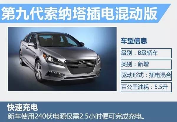 续航里程更长的索纳塔插电式混动车型,将于2017年引进国内。其9.8千瓦时的锂电池可以支持该车达到43公里的纯电动续航里程。插电式混动车型在国内想要拿到补贴,纯电动续航里程需要大于等于50公里,不知现代未来是否会提升电池容量以达标。