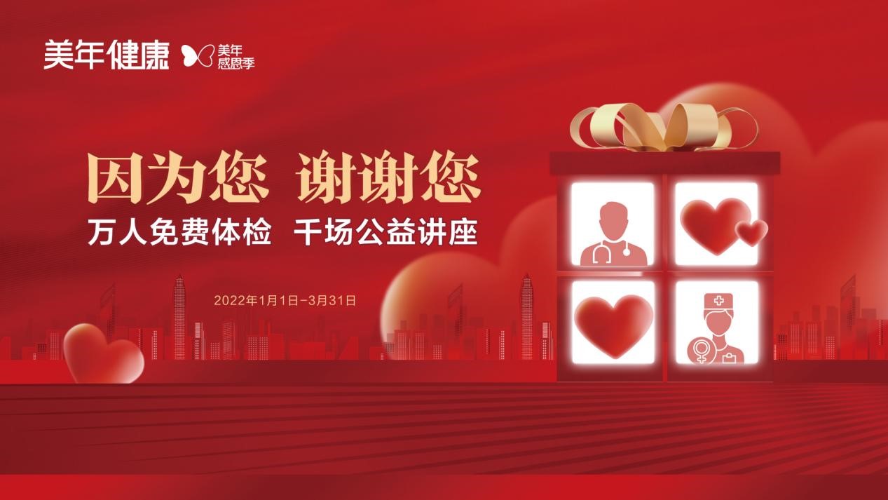 本次感恩季活动,美年健康将大力弘扬热衷参与社会公益,积极践行企业社会责任的优良传统,在全国数百家体检中心温暖启动“与爱同行——公益践行月”活动。1月起,美年健康集团旗下全国数百家体检中心将陆续发起“公益助残”、“情系老兵”、“关爱打工妈妈”、“社区义诊”、“客户服务日”与赞助“光盘行动”等六大品牌公益活动,为亟需健康关爱服务的残疾人士、退伍老兵、都市打工妈妈群体、奋斗在抗疫一线的社区工作者和志愿者以及学生等人群提供免费公益体检服务,目标实现万人免费体检。同时组织公司专家顾问、医护人员深入企业、学校、社区,以及利用全国600多家体检中心,计划开展千场健康知识公益讲座及义诊活动,用企业大爱打造最有温度的健康体检品牌,用实际行动践行“守护每个中国人的生命质量”的企业使命!