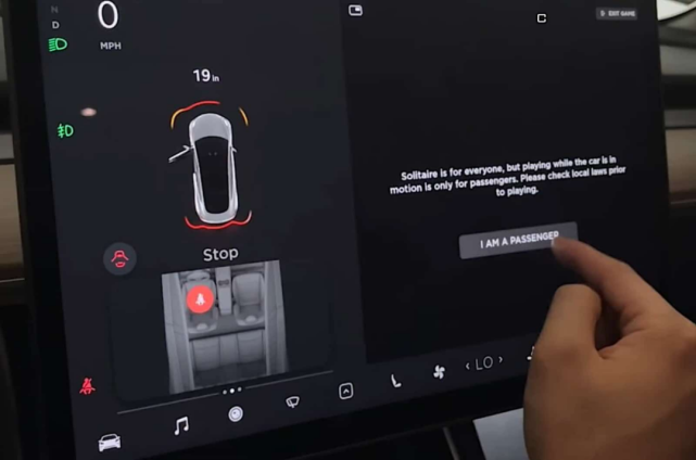 在这套“自查自纠”的程序逻辑下,驾驶员可以轻松绕过系统设定,按下“Passenger Play”确认键,随后一边开车,一边玩傲气雄鹰或蜘蛛纸牌。
