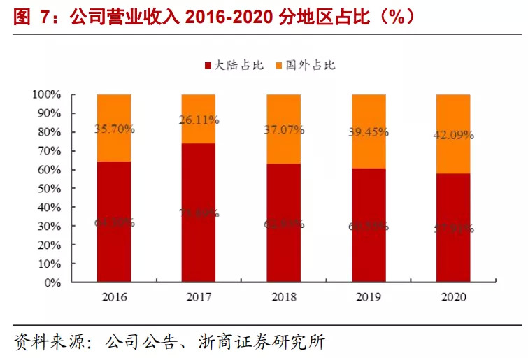分地区看,海外市场占据九号公司营收近半壁江山。海外营收已从2016年4.12亿增长至2020年的25.20亿,CAGR为57.40%,占收入比重从35.70%增长至42.09%。到了2021年前半年,海外收入占比进一步提高到45.11%,已经成为公司营收的重要支柱。