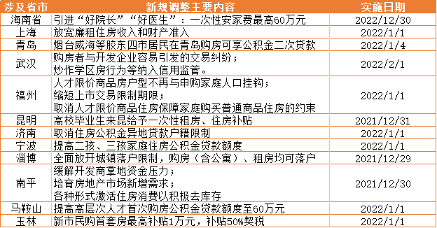 为响应去年底中央经济工作会议再度提出的“房住不炒”,2022年伊始,多地因城施策,发布了促进房地产业良性循环、健康发展的新规定,以激活合理住房消费。