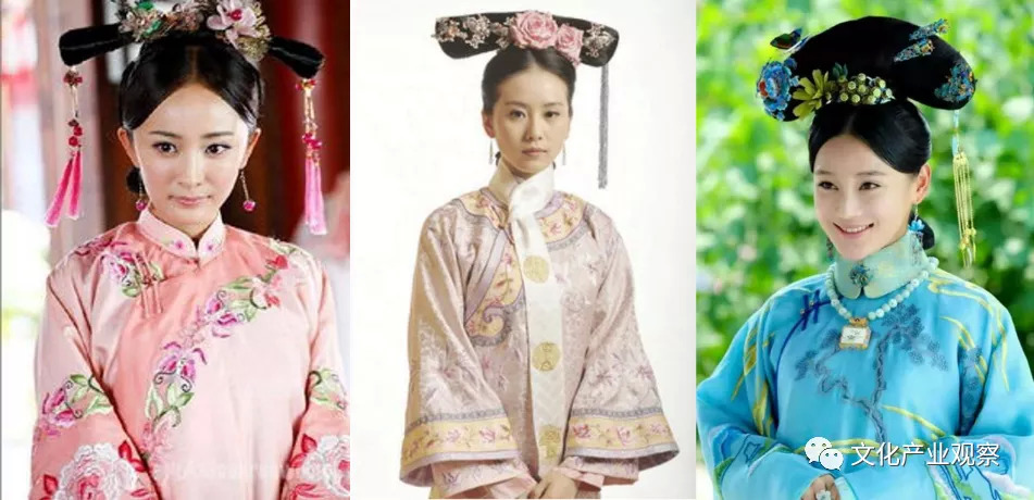 如果说,前面的仙侠剧并不能完全代表这个阶段的话,于正2011年出品的《宫》则直接打开了造型史的新阶段,引领了古装造型的新转变。妆容逐渐粗糙、发型逐渐随意简单,服装样式基本不变、入目皆是一片大红大绿逐渐成了当时古偶剧的服装标配。典型代表就是《宫》、《步步惊心》、《宫锁珠帘》。