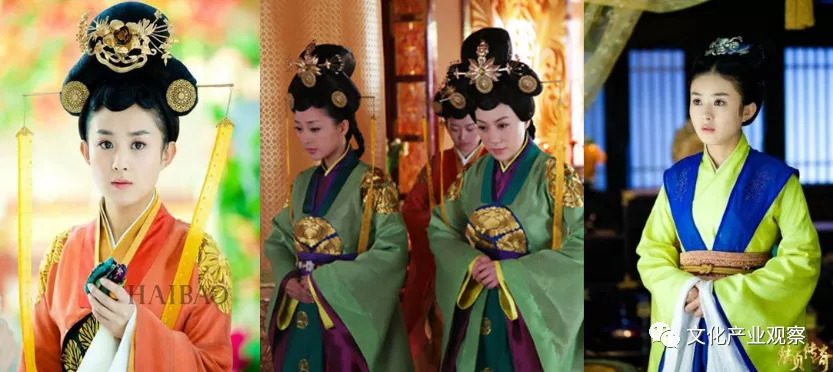 这一阶段,古装剧仍然是市场大流,但质量也开始出现分化。其中古装仙侠剧造型主要延续《仙剑奇侠传三》,配额服饰变化不是很大,呈现出颜色混搭,配饰多样繁琐的特征。例如《天天有喜》、《封神英雄榜》、《女娲传说之灵珠》等。