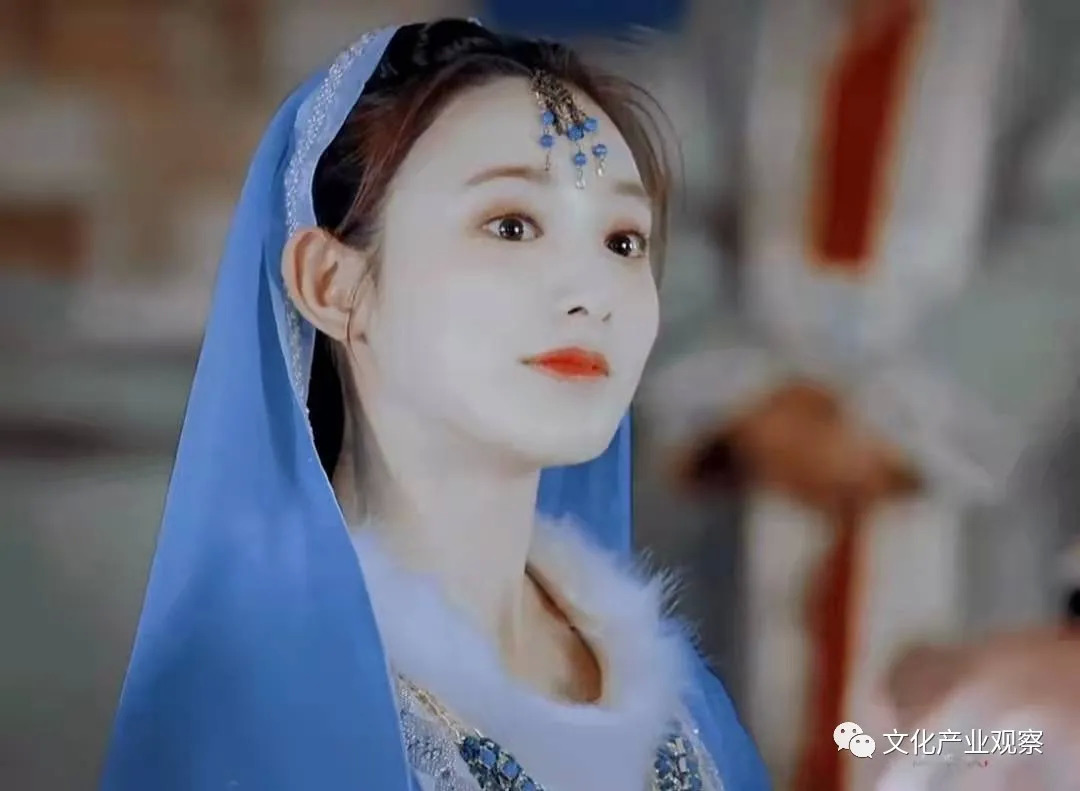 蓝色头纱加配额塑造了一个灵动可爱的西域公主形象
