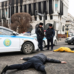 当地时间1月10日,哈萨克斯坦举行全国哀悼日,各地以不同形式悼念在骚乱中逝去的无辜生命,首都努尔苏丹多地降半旗致哀。此前,萨克斯坦总统托卡耶夫签署法令,宣布1月10日为全国哀悼日。