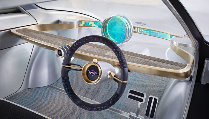 除了这些动态元素之外,MINI的基本原则还包括:利用巧妙细节设计,以及在最小的空间面积内打造最大车内使用空间。高效零排放驱动系统以及更低的碰撞区,保证了其小巧车身——自1959年第一款MINI开始就一直保持紧凑的尺寸。车内配备了全尺寸长座椅,踏板可以与方向盘一起滑动,调整位置适应驾驶者;这些都增强了驾驶舱的空间感。方向盘仍然保留,但是用户可以选择让汽车主动驾驶;如果车外景色沉闷,也许你会想做些其它事情。主动驾驶在MINI VISION NEXT 100概念车中扮演着重要的角色,使其能够在没有乘员的情况下驾驶到充电站、洗车房、停车场或下一位用户所在的位置。