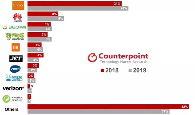 根据Counterpoint 公布的 2019 年全球儿童手表市场占有率显示,中国的儿童智能手表占有全球市场的 62%,其中小天才手表( imoo)占全球市场 26%,在国内市场,其市占率第一,超过国内其他儿童手表市场之和。截止至2019年3月,小天才电话手表国内共累积出货超2000万台。